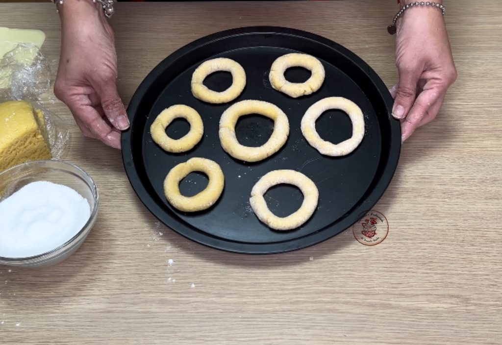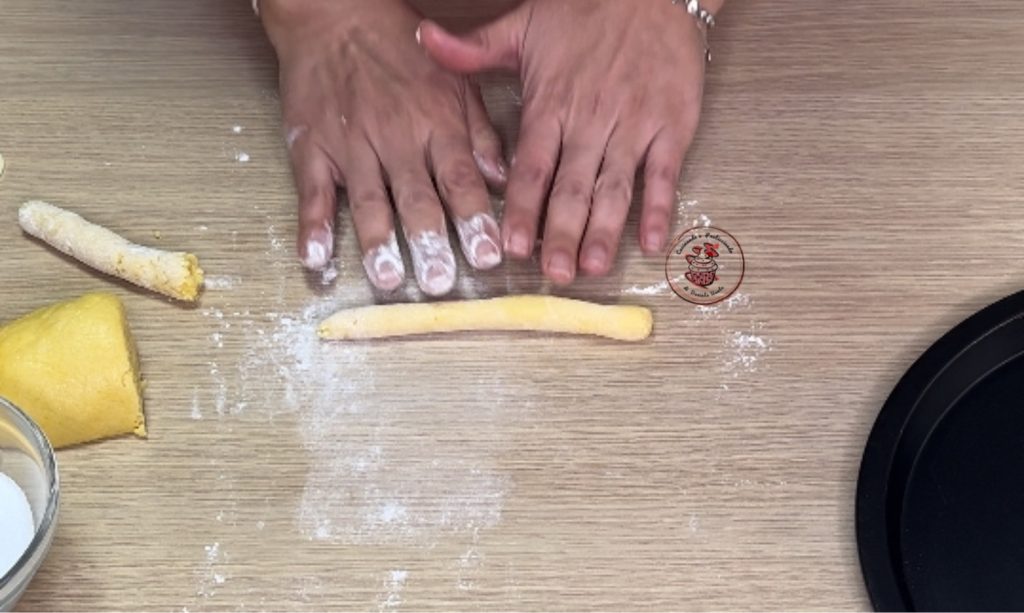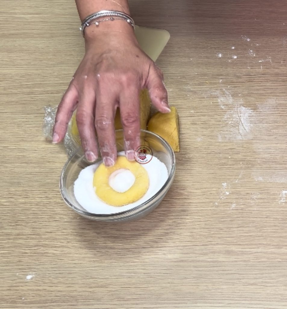 Forme pequenos cilindros, una as 2 extremidades e forme as rosquinhas.