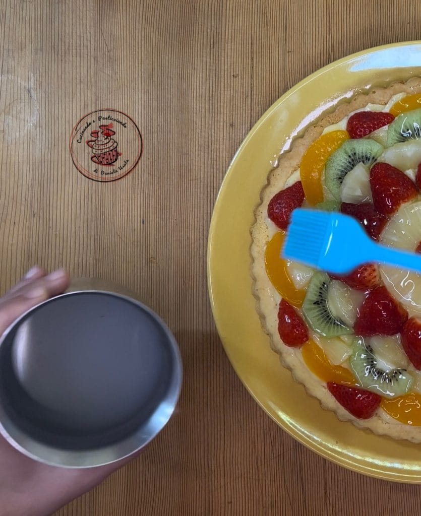 • Com um pincel, pincele a superfície da nossa torta e deixe descansar na geladeira por algumas horas.