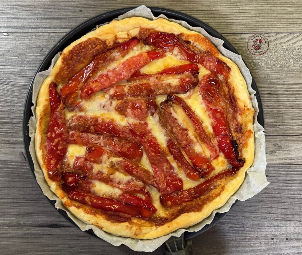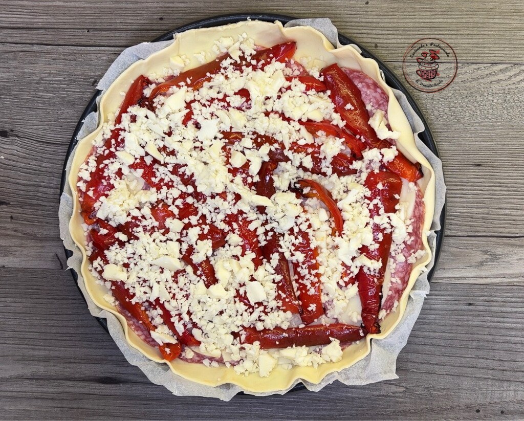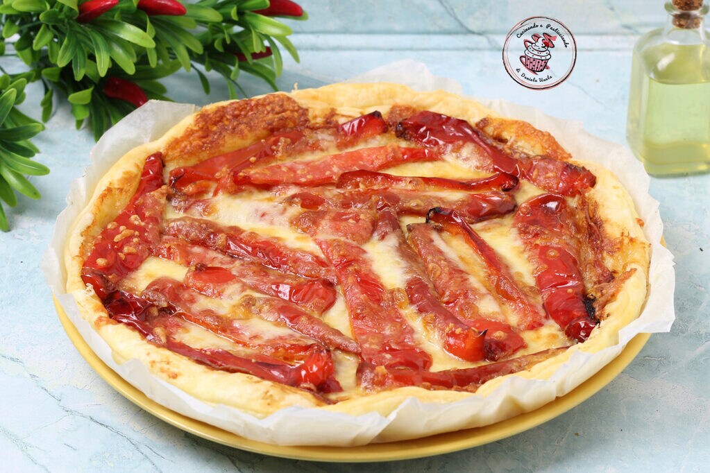 Colorida, rica e incrivelmente saborosa: a torta salgada com pimentões, salame e queijos é a receita perfeita para um jantar rápido, um almoço no escritório ou para levar ao piquenique. Os pimentões, doces e suculentos, combinam perfeitamente com o sabor do salame e a cremosidade da provolone e mozzarella, criando uma mistura irresistível.