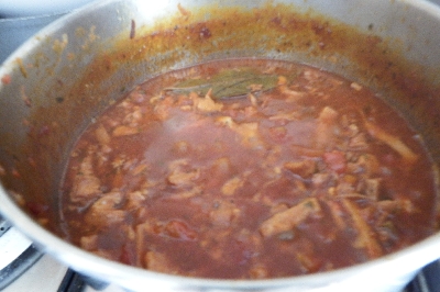Adicione a passata de tomate e o caldo de carne quente. Misture bem e continue cozinhando por pelo menos duas horas até que a dobradinha esteja macia e saborosa. Se a dobradinha ficar muito seca, adicione um pouco mais de caldo.