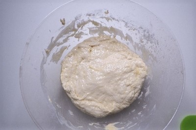 Finalmente, adicione o azeite de oliva extra virgem e o sal, e misture bem com a espátula até formar uma bola muito macia e pegajosa