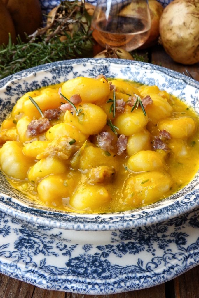 Os nhoques com abóbora e linguiça são um prato principal com aroma de outono, com um sabor envolvente e cores que evocam os primeiros frios e as folhas caindo.