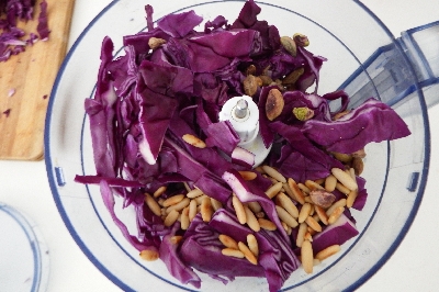 Preparação do pesto de repolho roxo