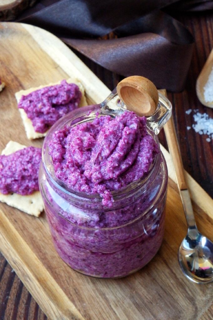 O pesto de repolho roxo é uma das coisas que mais amo no inverno. Primeiramente porque é um creme saudável e genuíno, preparado em poucos minutos, mas principalmente é absolutamente versátil, pois é perfeito como aperitivo sobre torradas, ou como molho para massas misturado com uma concha de água de cozimento.