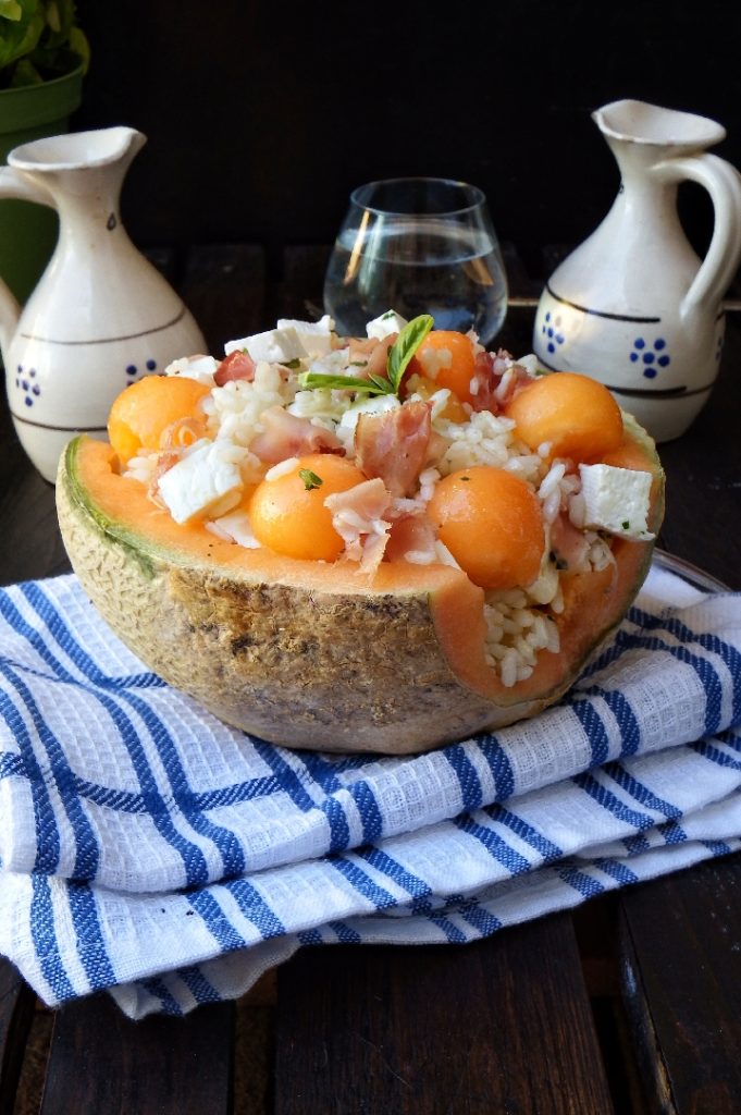 A salada de arroz com presunto e melão é um ótimo prato único para servir frio, que une em um único prato duas das minhas coisas favoritas para comer no verão. Uma ideia saborosa mas também original se você quiser servir seu arroz dentro das cascas do melão durante um jantar entre amigos.