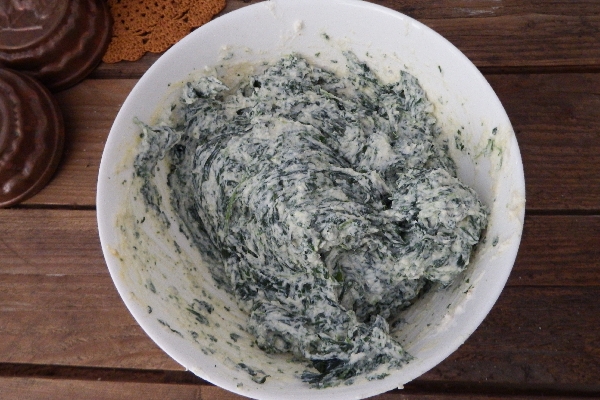 Esprema bem o espinafre para retirar a água de vegetação e pique finamente com a faca