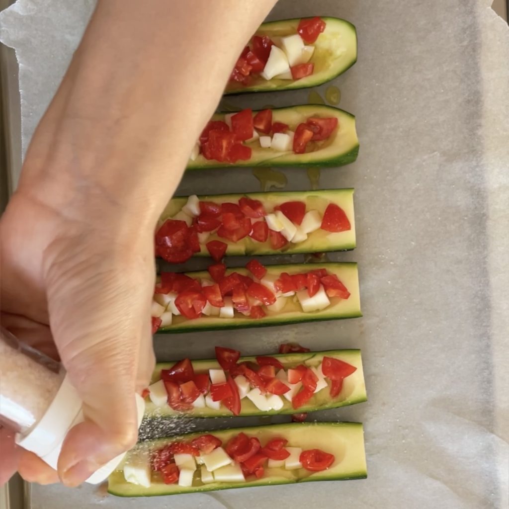 • Adicione um fio de azeite de oliva extravirgem nas abobrinhas