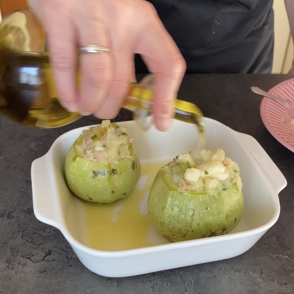 Abobrinhas redondas recheadas com atum são um segundo prato fácil de fazer e saboroso. As abobrinhas redondas recheadas com atum e batatas são ótimas tanto quentes quanto em temperatura ambiente. Você pode fazer as abobrinhas redondas recheadas na airfryer se não quiser ligar o forno, ficarão muito boas de qualquer forma. No procedimento da receita, você encontrará também instruções para o cozimento das abobrinhas redondas recheadas na airfryer. As abobrinhas redondas ao forno têm um recheio simples e cremoso de atum e batatas. Com as abobrinhas redondas, recomendo também experimentar os CORDON BLEU DE ABOBRINHAS no forno e as PIZZETINHAS DE ABOBRINHAS. Agora vamos lá. Veja como fazer abobrinhas redondas recheadas com atum e, se experimentarem, me avisem. Barbara