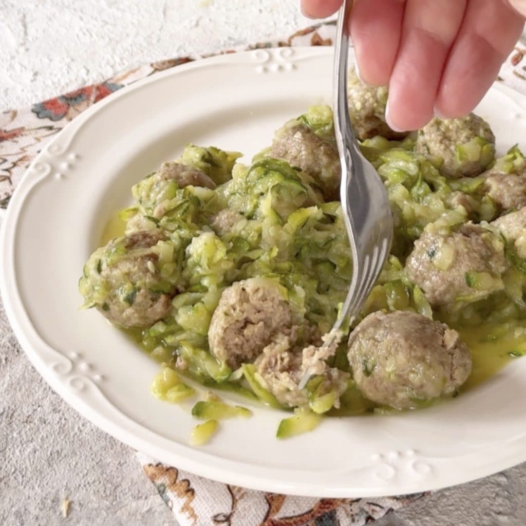 Sirva as almôndegas com as abobrinhas estarão cozidas, sirva acompanhando com as abobrinhas.