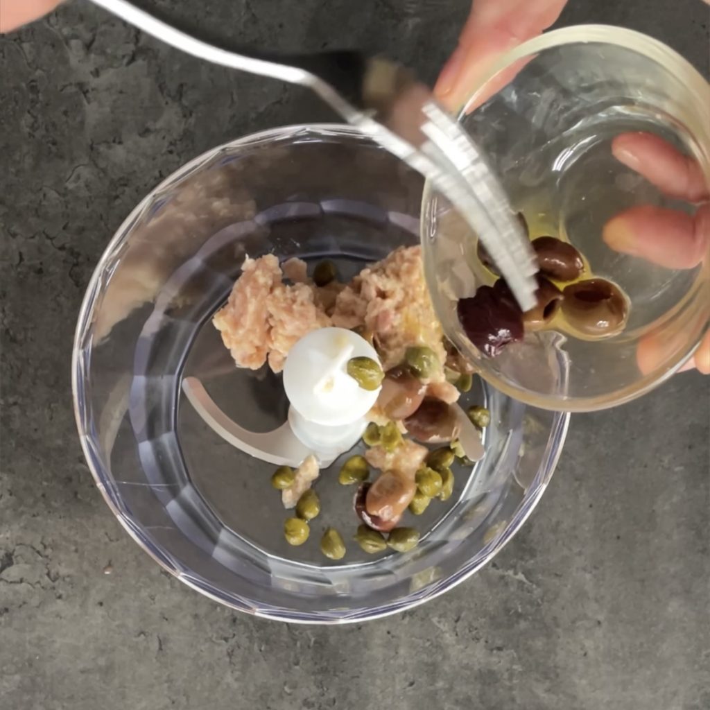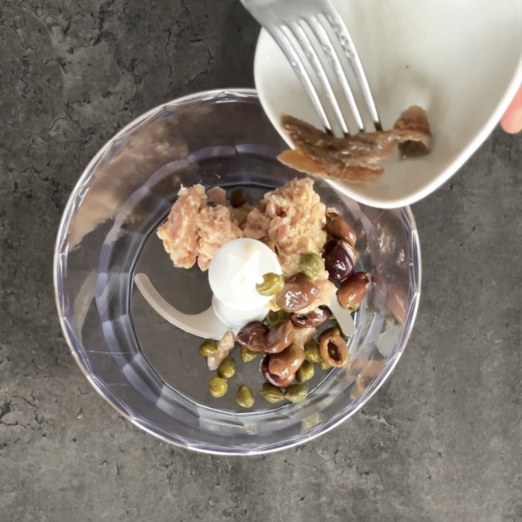 Comece a preparar os Barquinhos de aipo com molho de atum, colocando no liquidificador o atum escorrido do seu óleo,