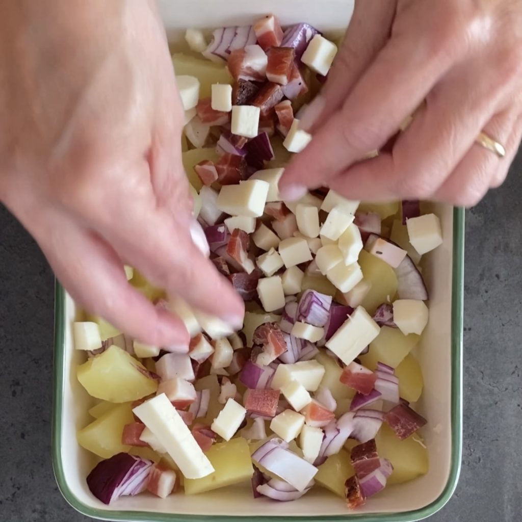Como preparar batatas e speck assados com cebola