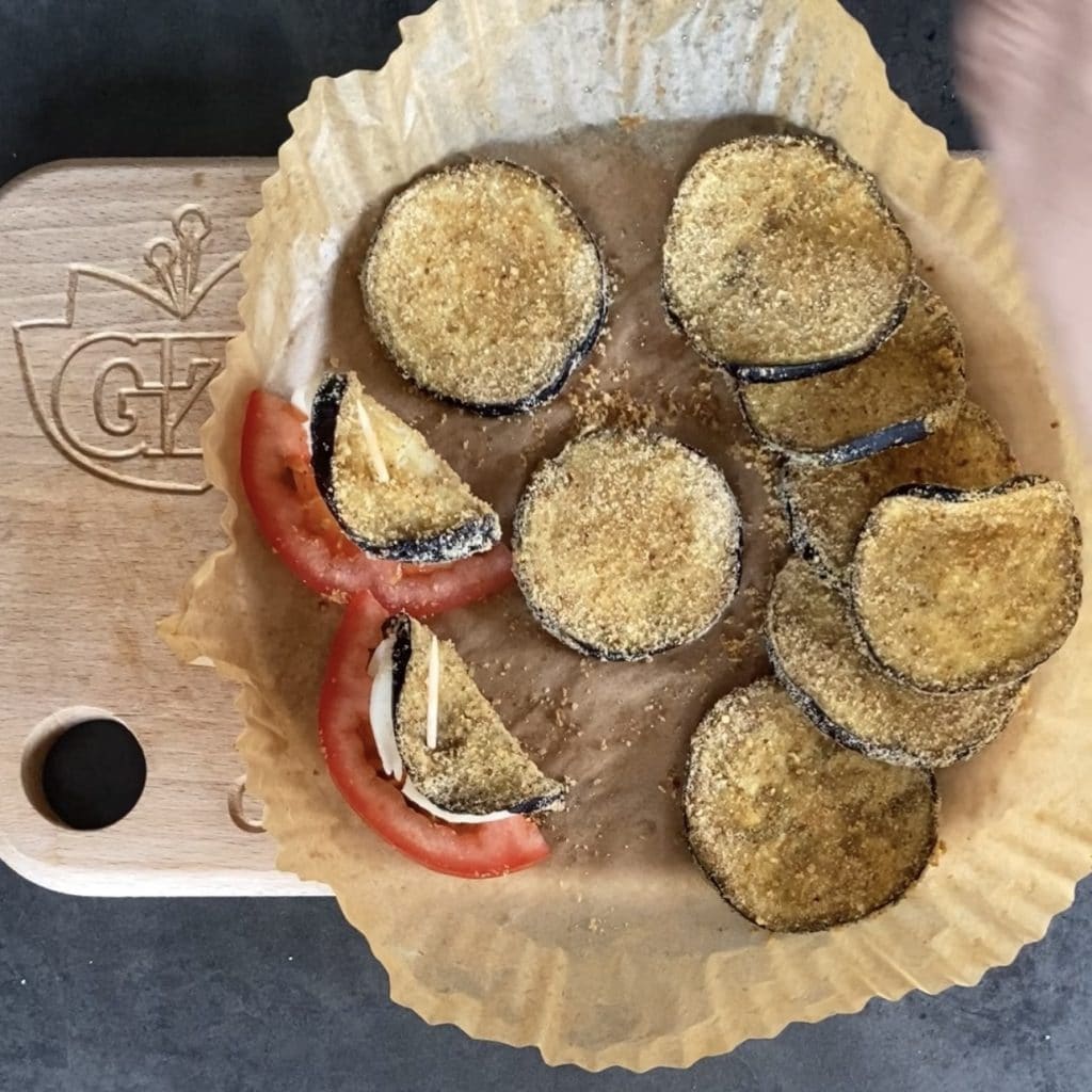 Berinjelas gratinadas com tomates um delicioso acompanhamento fácil e saboroso, são ótimas tanto quentes e derretendo quanto em temperatura ambiente. Estas berinjelas com tomates e queijo podem ser feitas no forno ou na fritadeira a ar e são preparadas rapidamente, os tacos de berinjela são perfeitos para acompanhar qualquer tipo de prato principal ou até mesmo como prato único. O tempo de cozimento das berinjelas gratinadas com tomates na fritadeira a ar pode variar de acordo com o tipo de fritadeira a ar que você usa, esta é a FRITADEIRA a ar que eu uso. Recomendo que você confira 50 RECEITAS PARA A FRITADEIRA A AR e todas as receitas com a fritadeira a ar, certamente você encontrará outros pratos saborosos para experimentar. Agora vamos ver como fazer as berinjelas gratinadas com tomates, e se você experimentar, me avise. Barbara