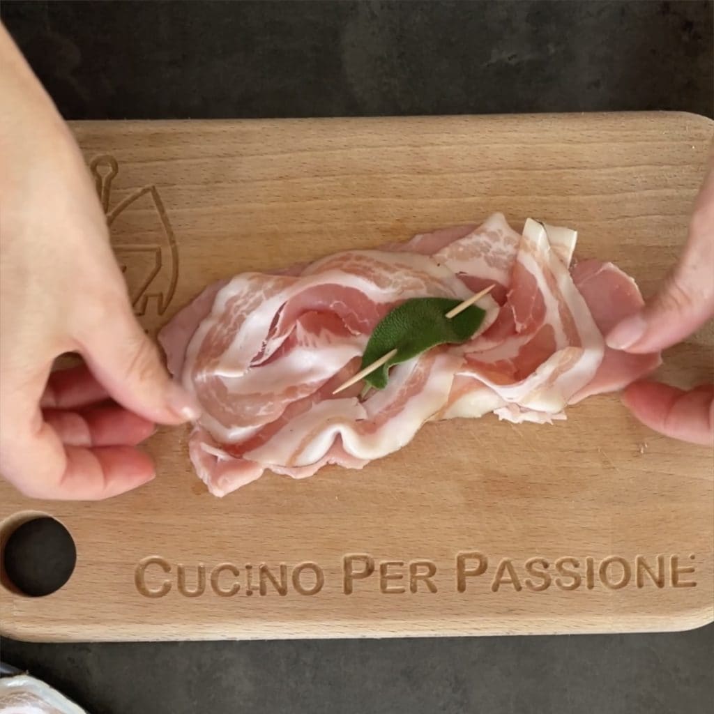 Sirva os Saltimbocca com bacon bem quentes acompanhados do molho de cozimento
