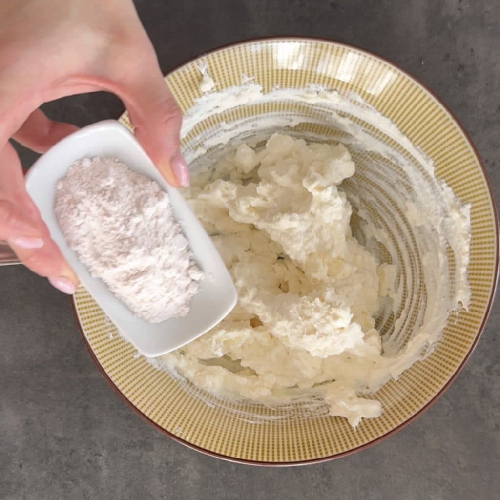 e a farinha em duas vezes, na primeira vez incorpore a farinha com um garfo,