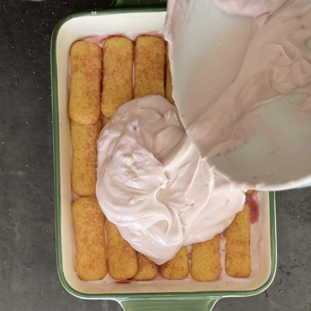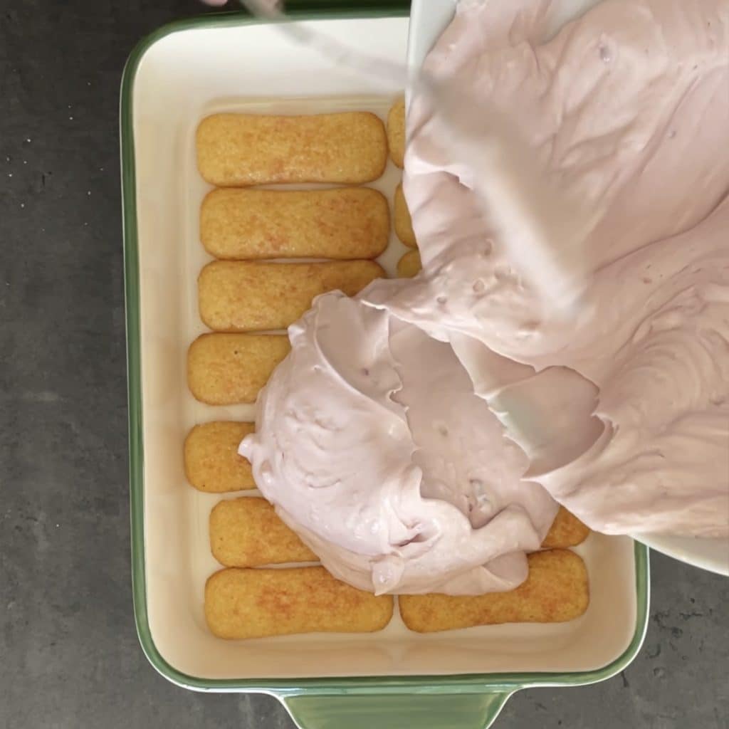 Despeje metade do creme de mascarpone e iogurte