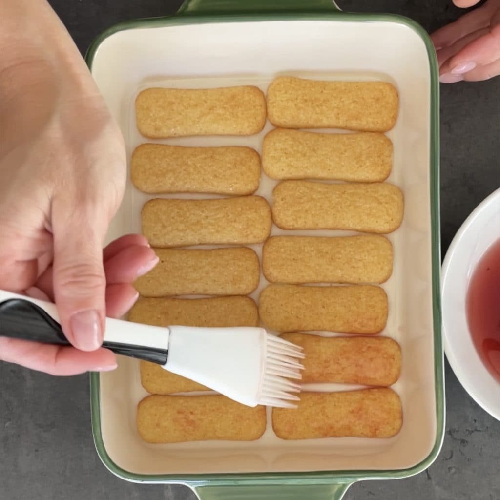 use o líquido para molhar os Pavesini, use um pincel para ajudar.