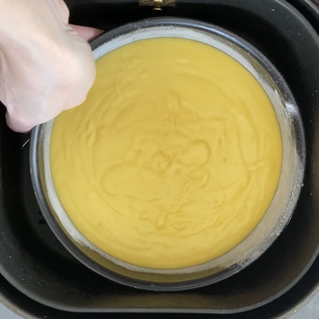 • coloque a forma no cesto da fritadeira sem óleo e cozinhe a 150C° por 50 minutos, antes de tirar a forma da fritadeira sem óleo, verifique o cozimento com um palito e, se necessário, continue cozinhando por mais alguns minutos.