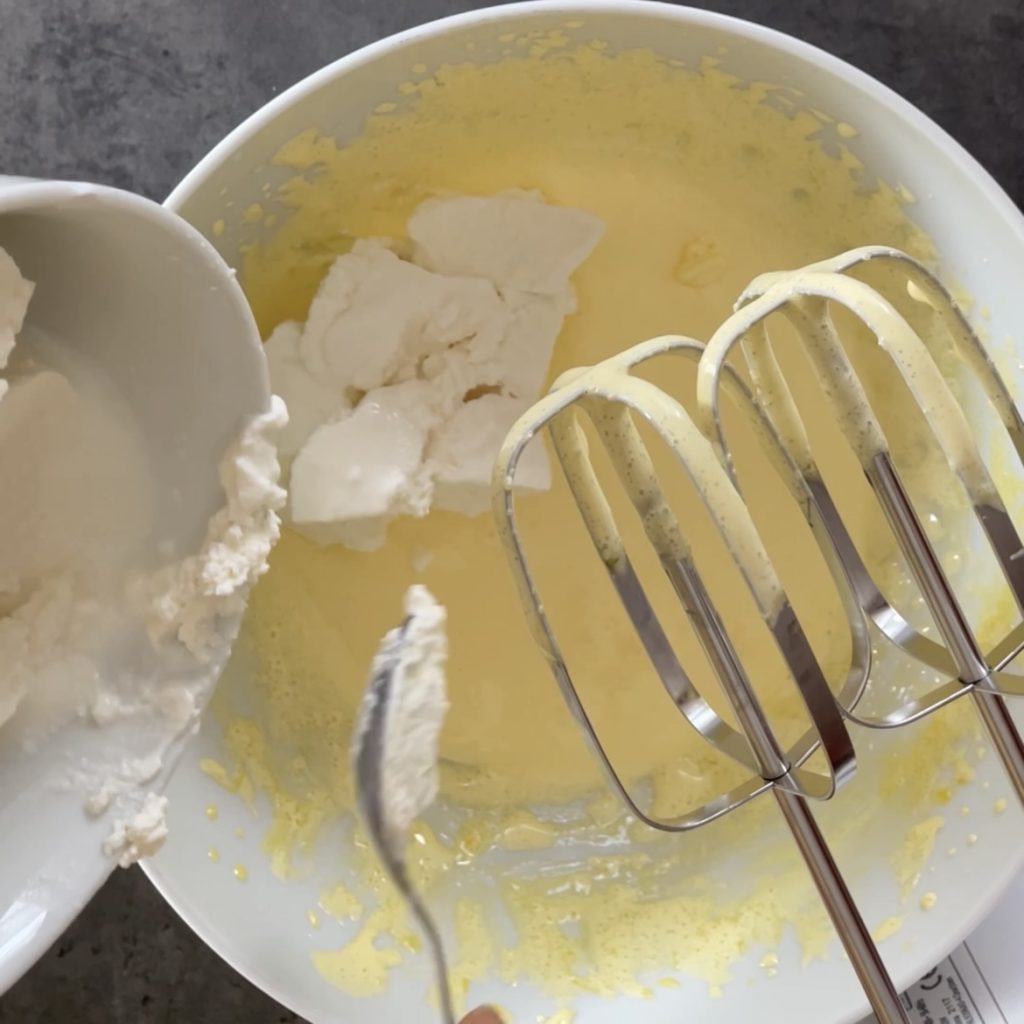 Adicione a ricota e, por último, a maisena, incorporando-a bem para que não haja grumos e obtenha uma mistura homogênea.