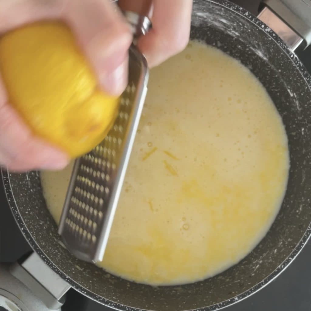 • Coloque a panela no fogo, sempre mexendo, e deixe ferver. Você verá que o creme de confeiteiro vai engrossar.
