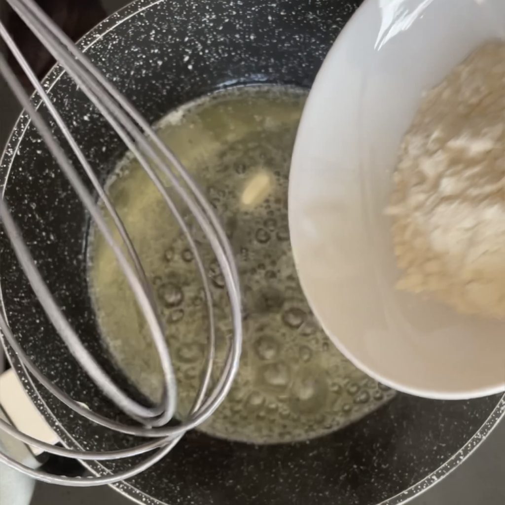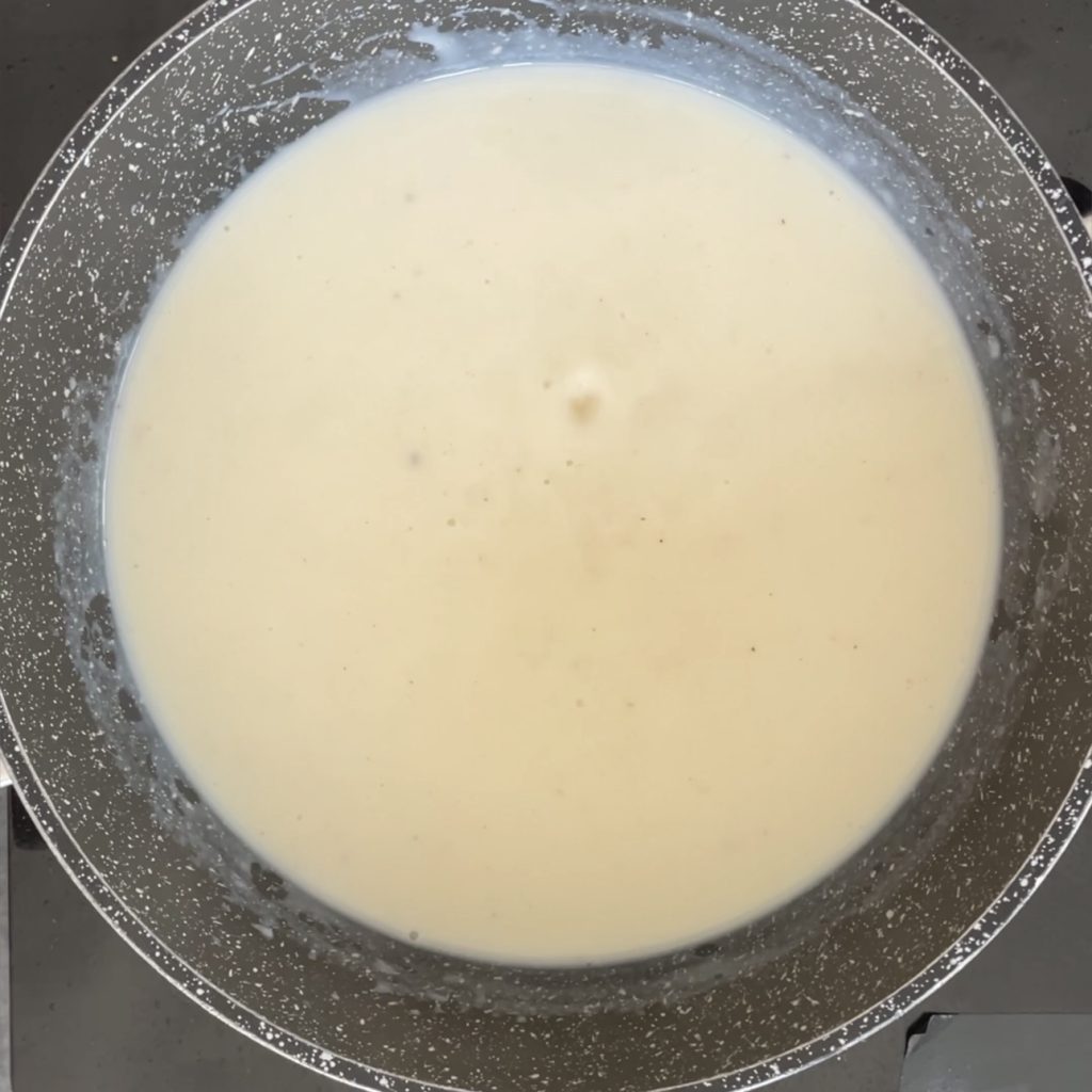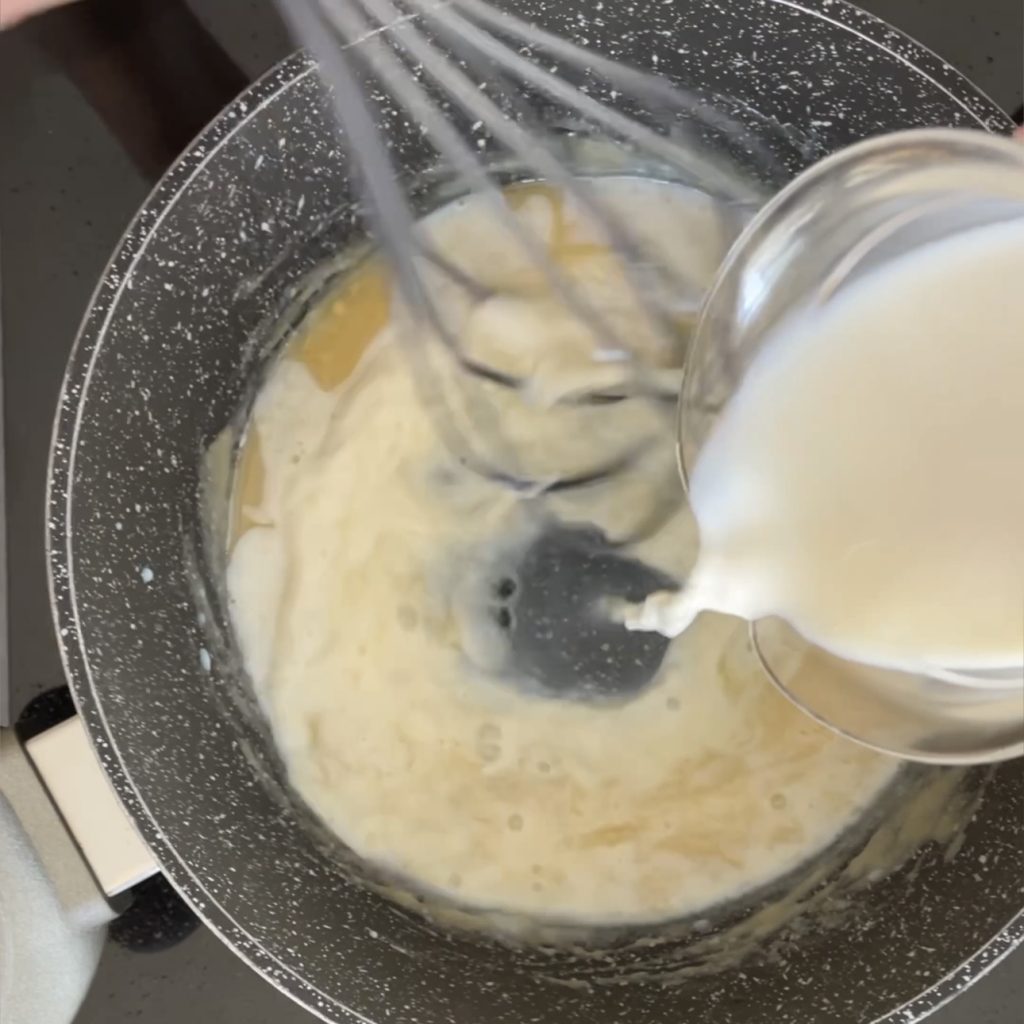 Prepare o molho bechamel, derreta a manteiga em uma panela e depois adicione a farinha