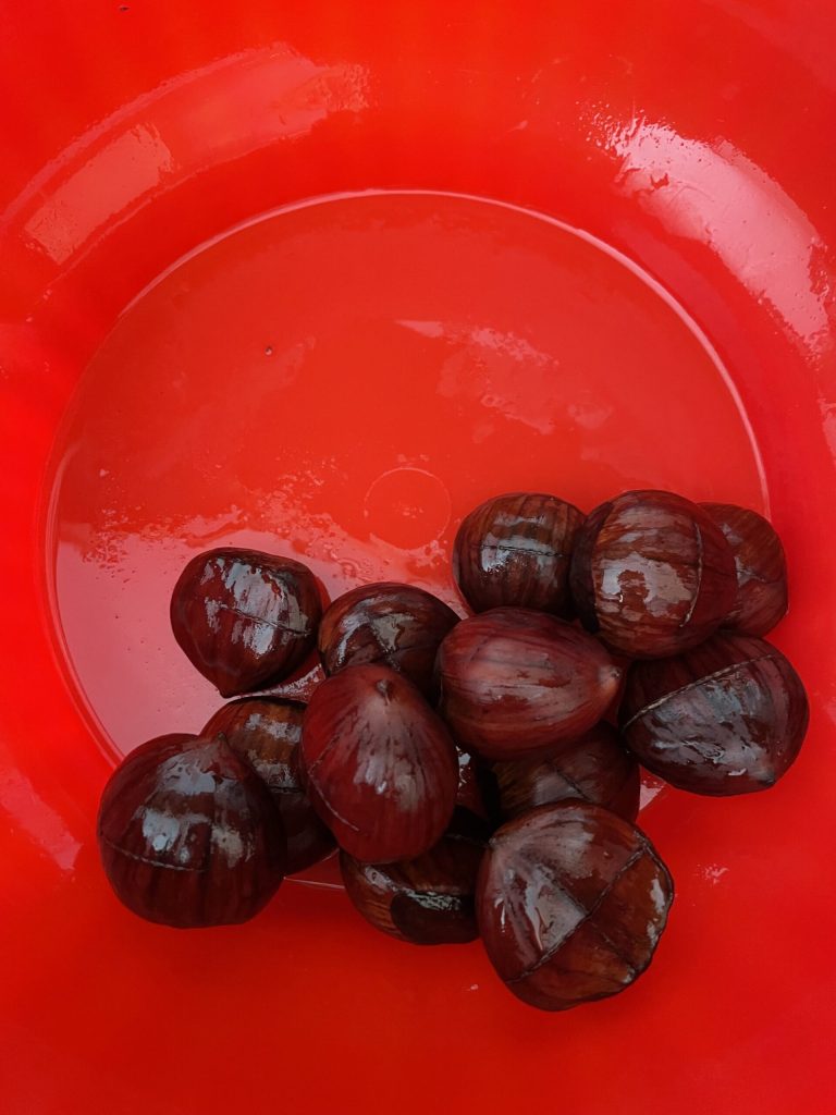 Deixe por 2/3 minutos aquecidas e depois consuma as castanhas cozidas na frigideira perfurada ainda quentes.