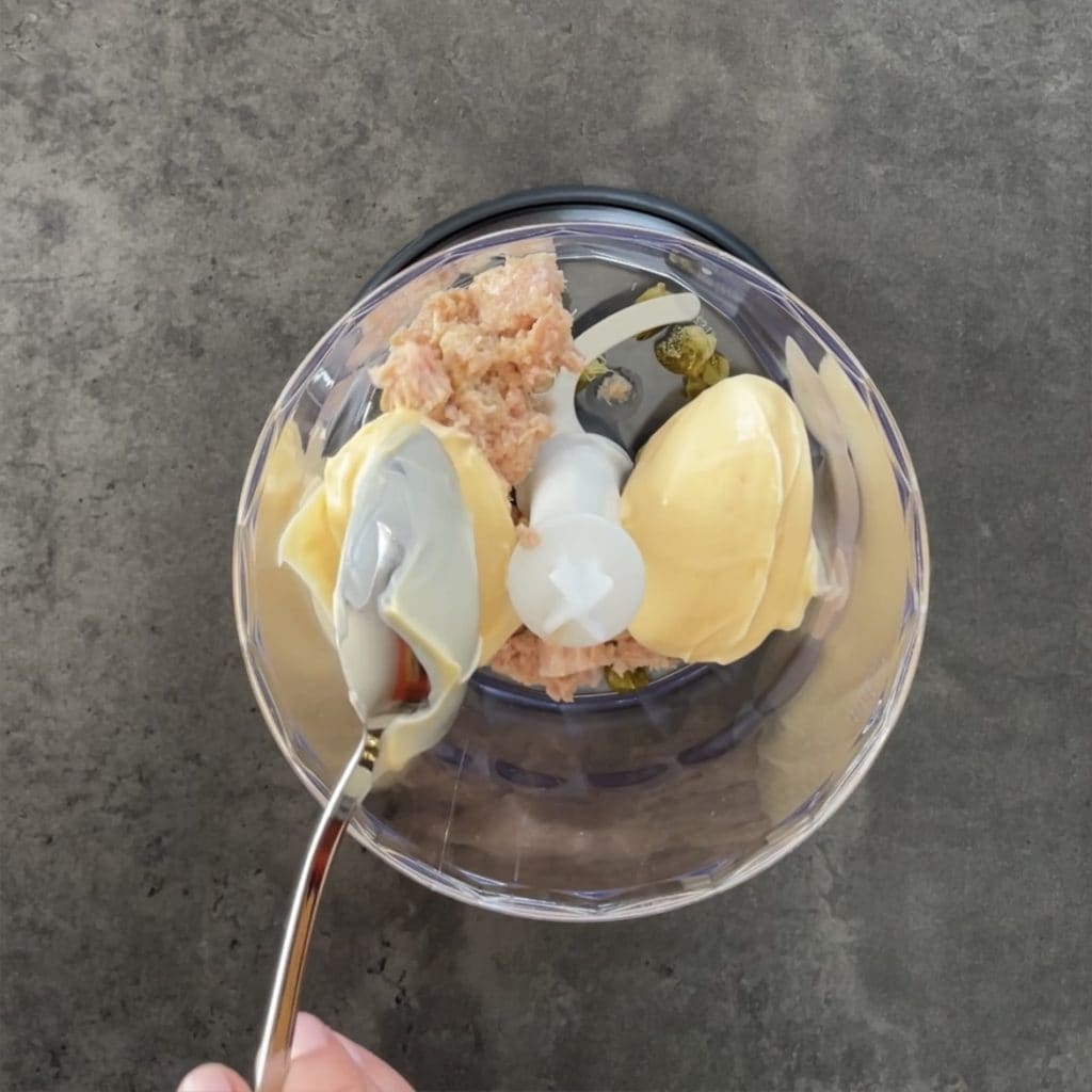 Prepare o molho de atum, coloque no copo do liquidificador, as alcaparras,