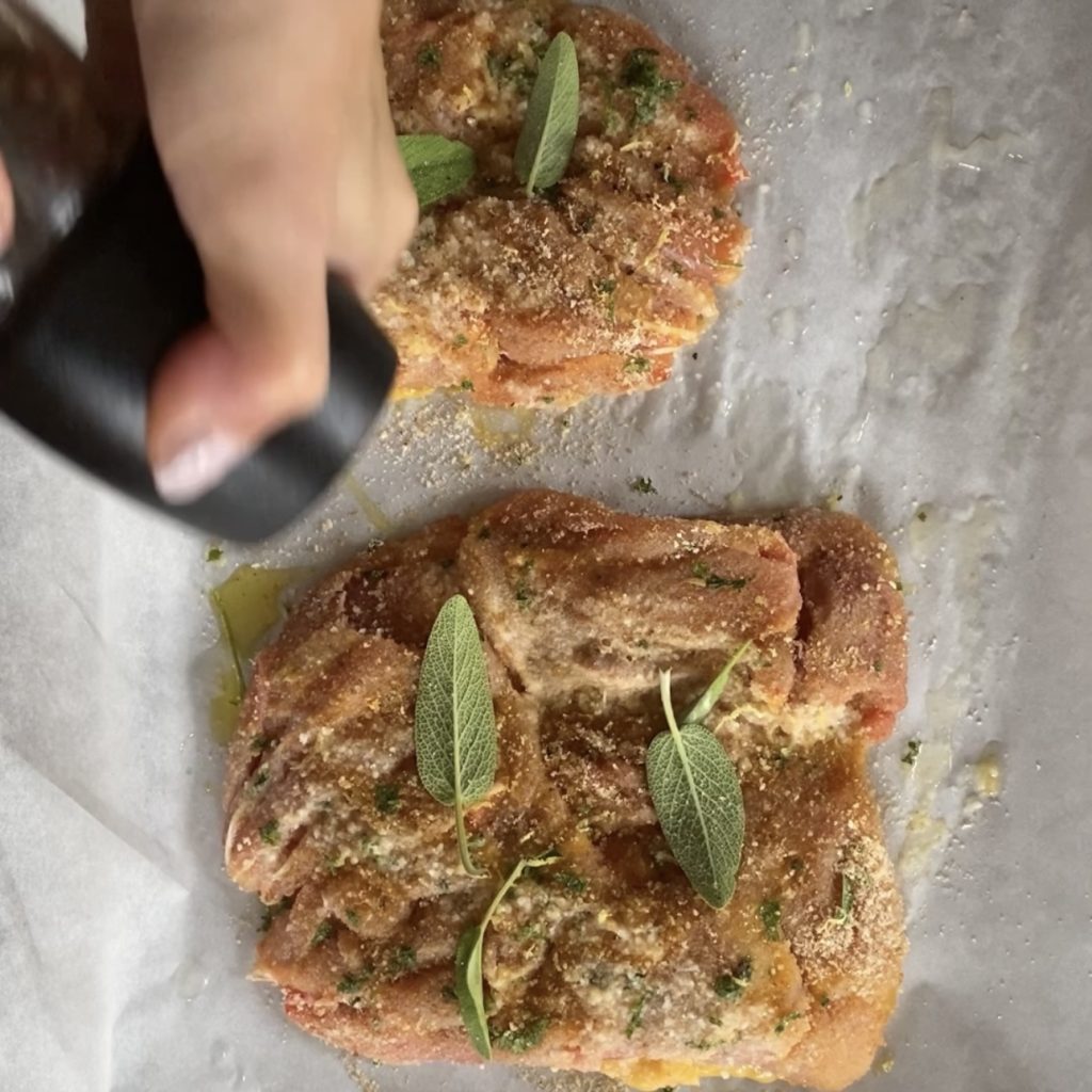 Passe as coxas desossadas na farinha de rosca aromatizada