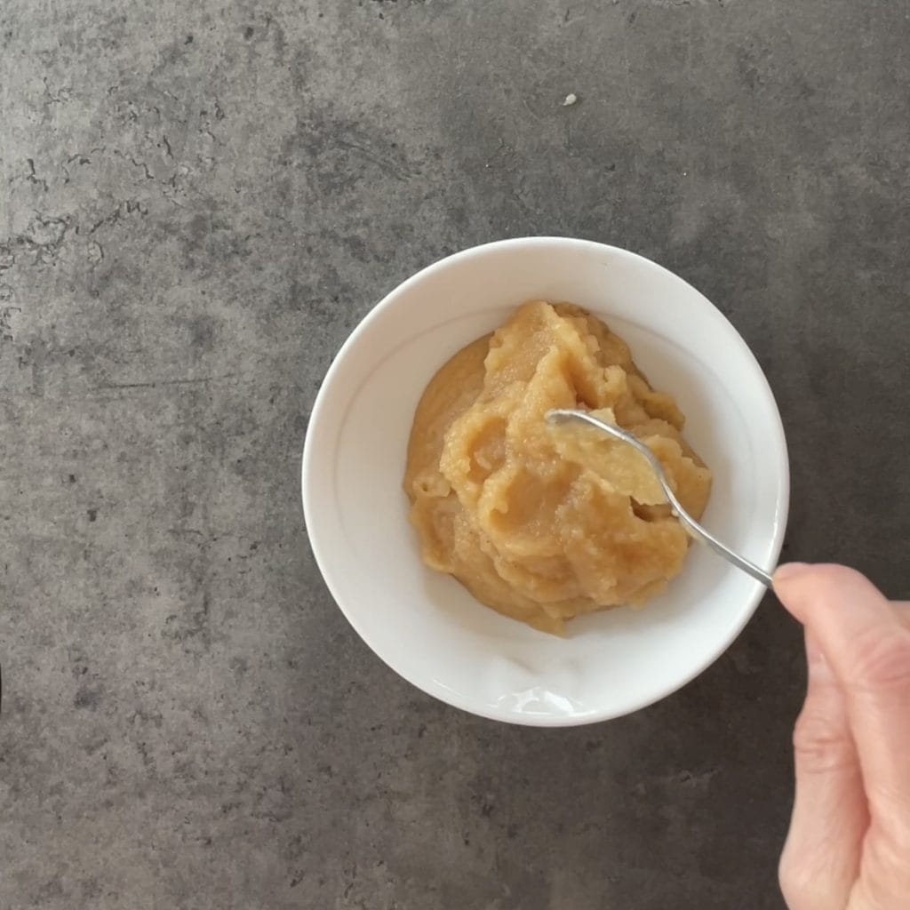 Coloque as maçãs em um liquidificador ou no copo do mixer de imersão. Bata por alguns segundos até obter um creme.