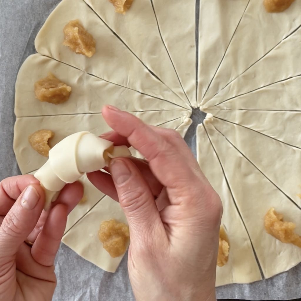 Procedimento para preparar os Croissants com massa folhada e maçãs