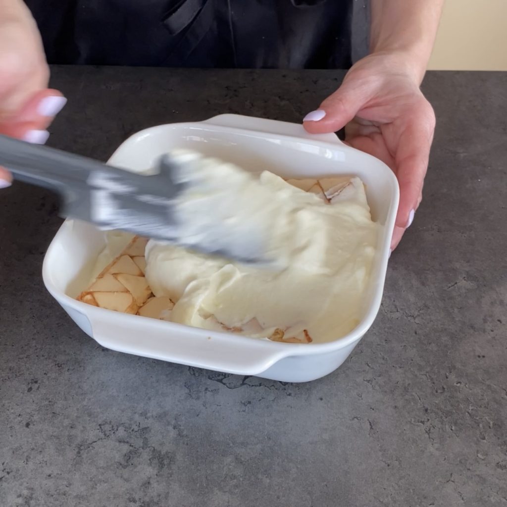 Quando a forma estiver completa, decore com o creme reservado anteriormente