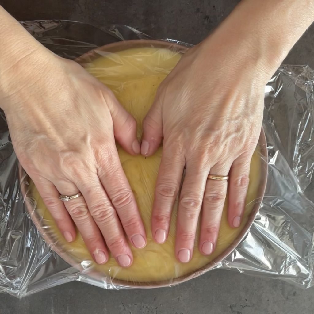 cubra com filme plástico aderente bem ao creme, para não formar a crosta, deixe esfriar e depois coloque na geladeira.