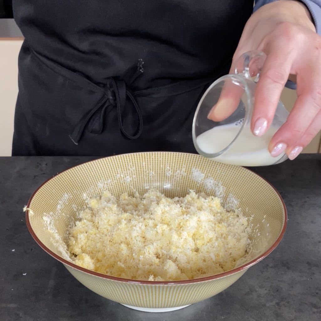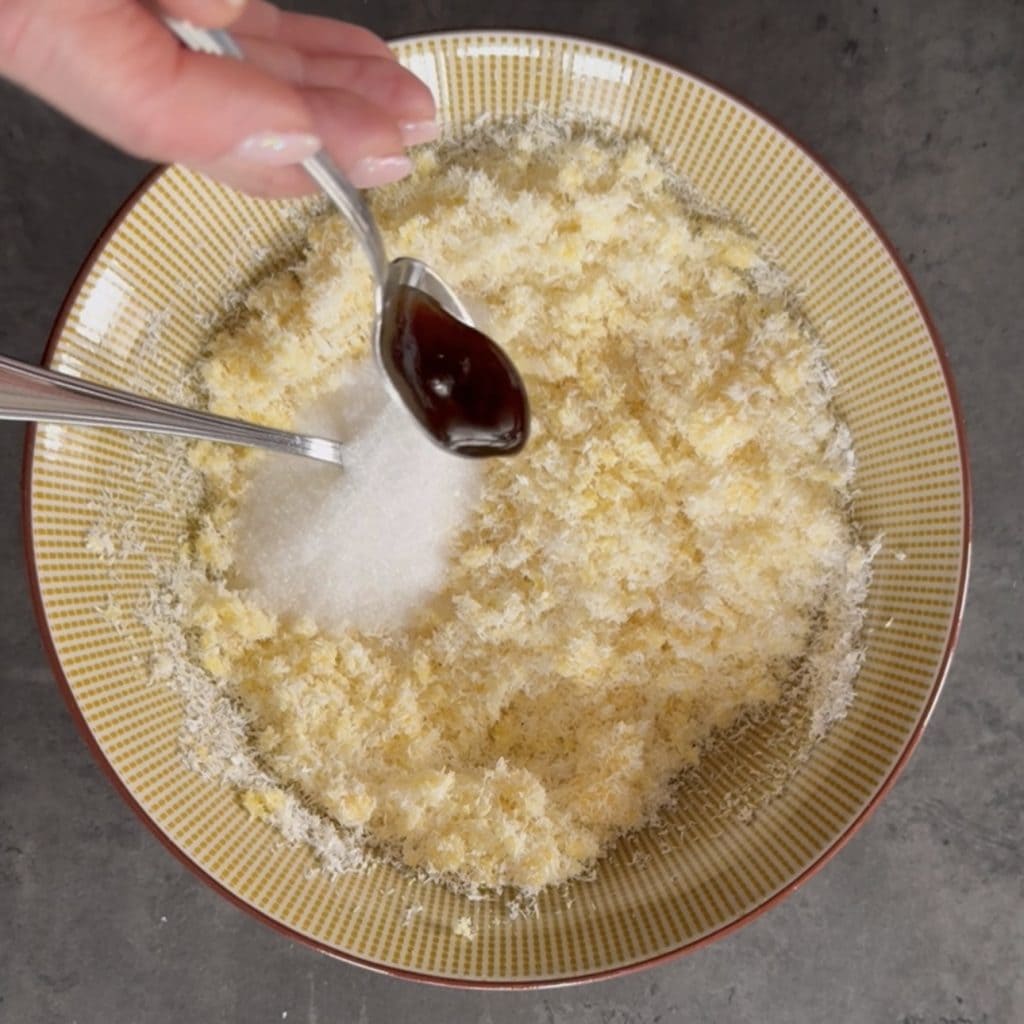 adicione o coco ralado e incorpore ao ovo.