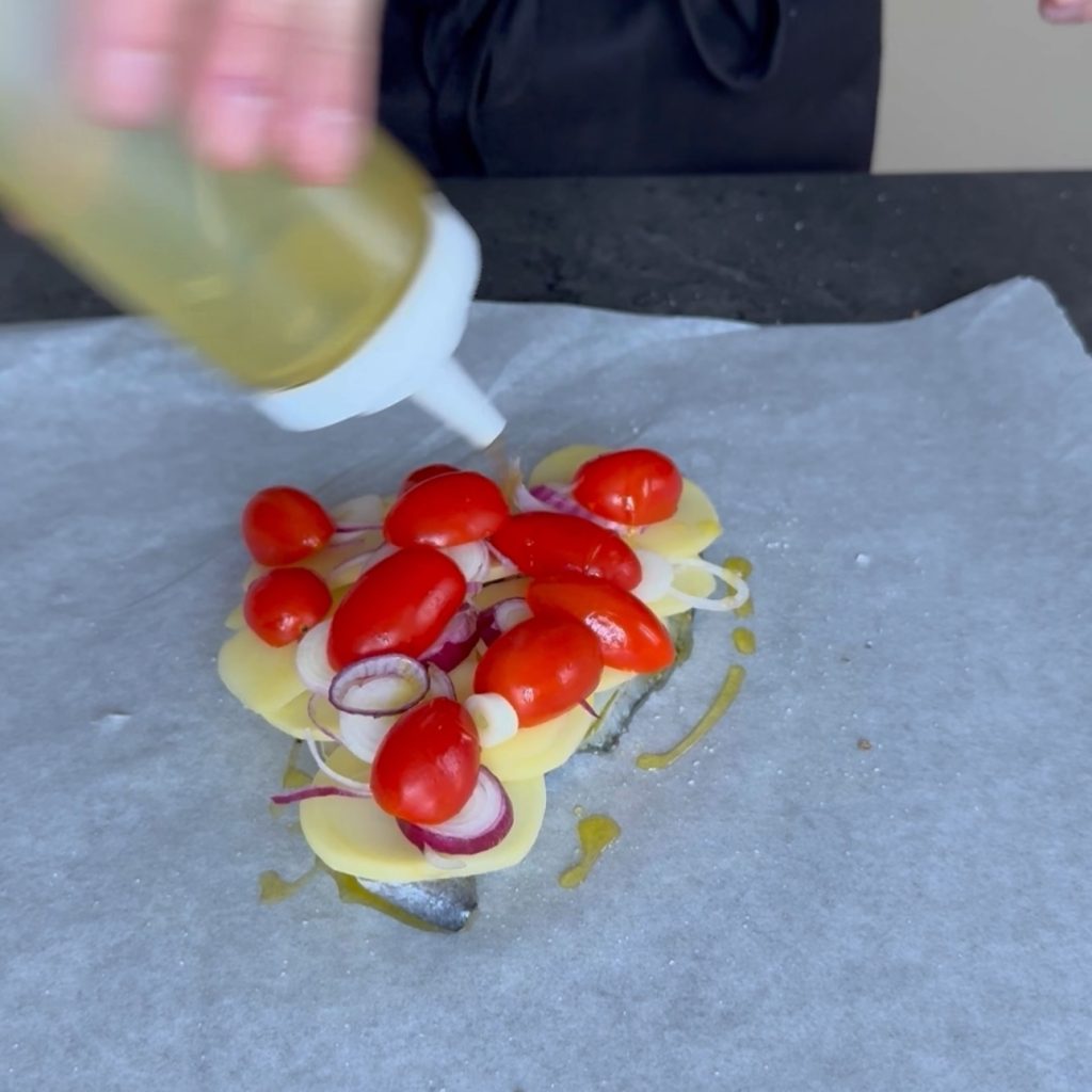 Como preparar a Dourada em papillote com batatas e tomatinhos