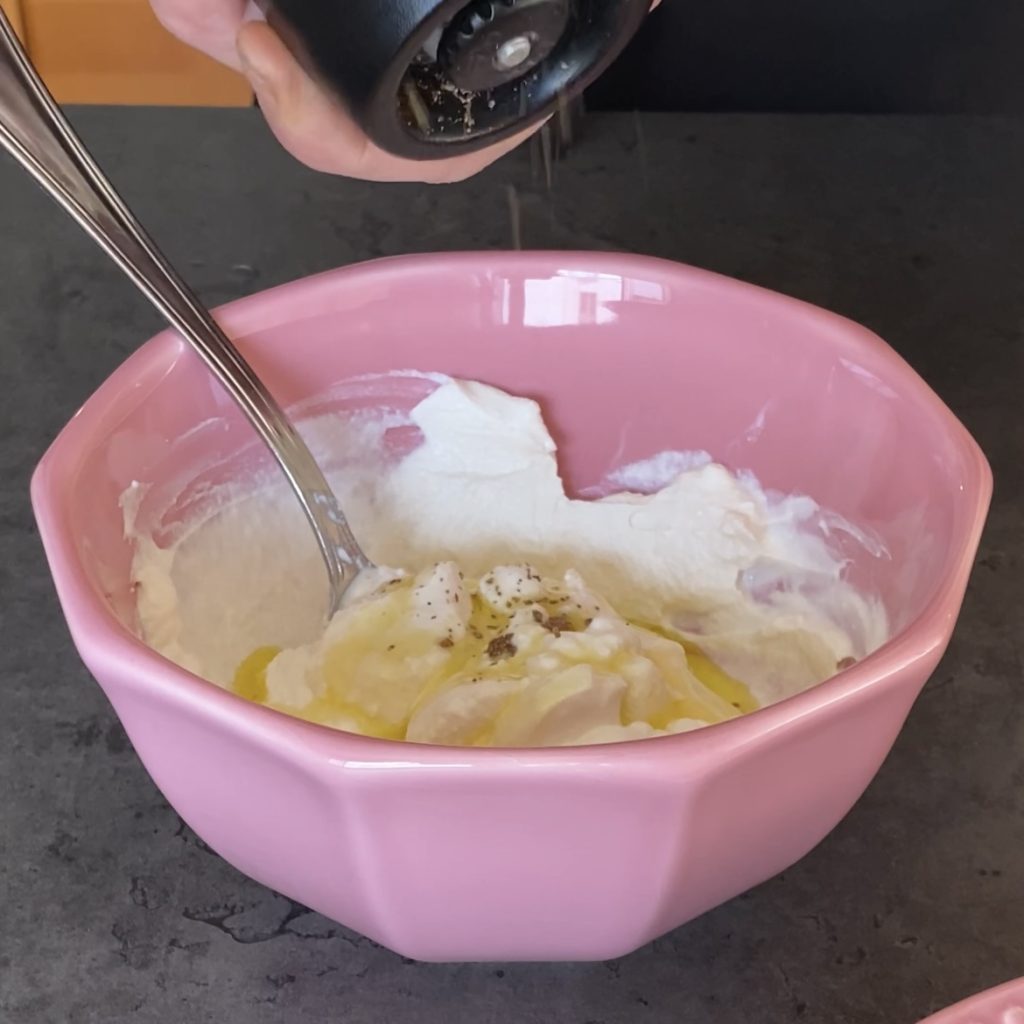 Começamos a preparar as flores de abóbora recheadas com ricota e atum, coloque a ricota em uma tigela e trabalhe com um garfo até obter um creme liso e homogêneo.