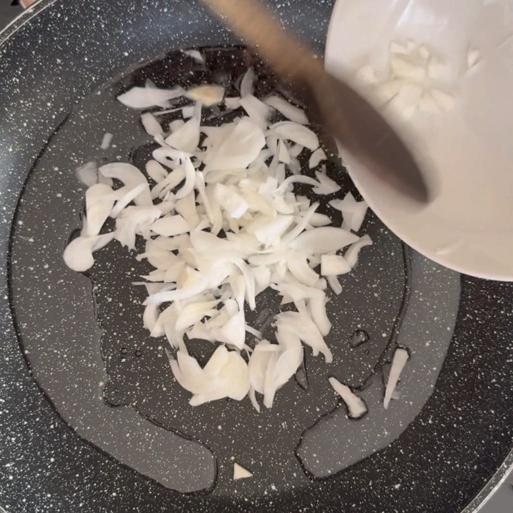 Coloque o óleo em uma panela antiaderente, melhor se usar um wok, adicione a cebolinha picada anteriormente,