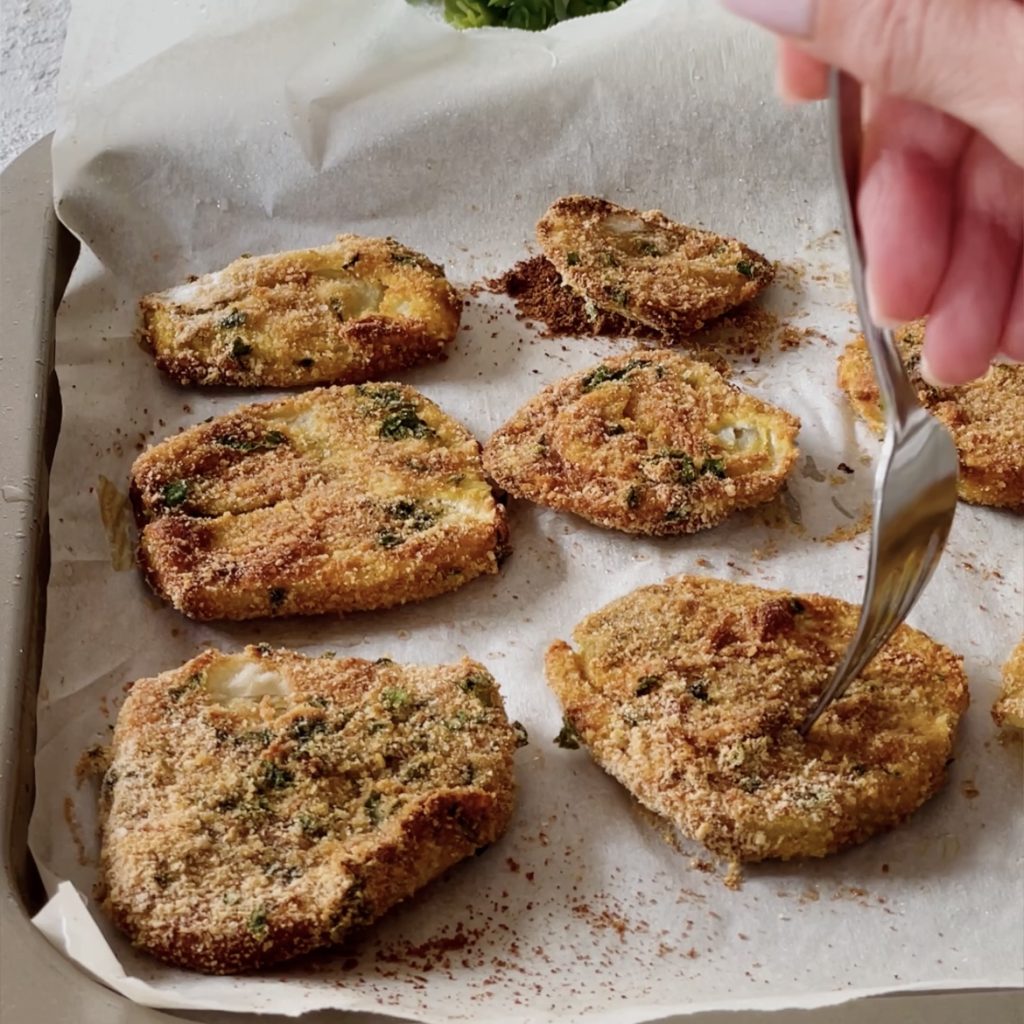 O funcho empanado no forno pode ser conservado após cozido na geladeira por 2/3 dias