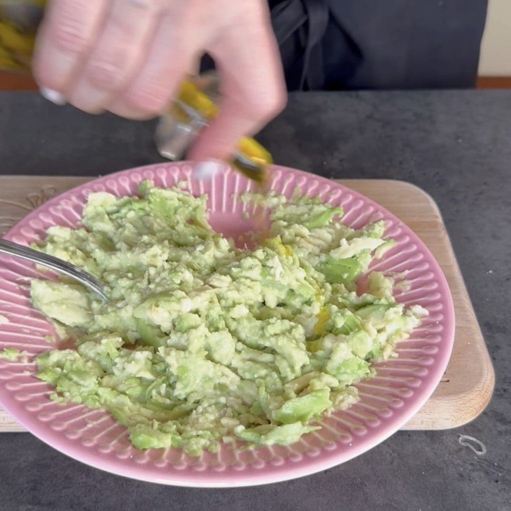 • e o creme de abacate, adicione em duas vezes para que o creme se misture bem ao macarrão.