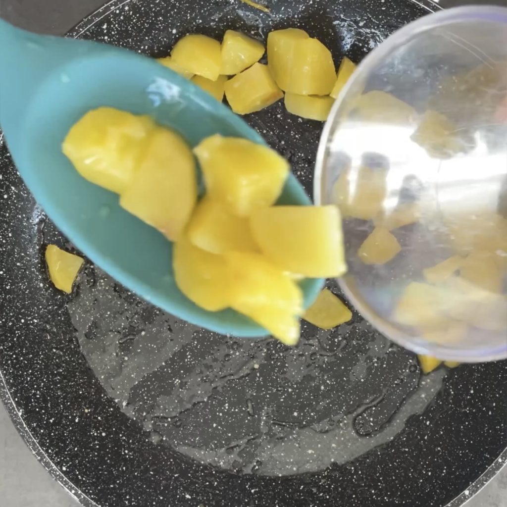 água e cozinhe por 15 minutos, mexendo de vez em quando. O tempo de cozimento pode variar dependendo do tipo de batata e do tamanho dos pedaços. As batatas devem estar macias, você pode verificar inserindo os dentes de um garfo, se não houver dificuldade em penetrar, significa que estão cozidas, caso contrário, cozinhe as batatas por mais tempo.