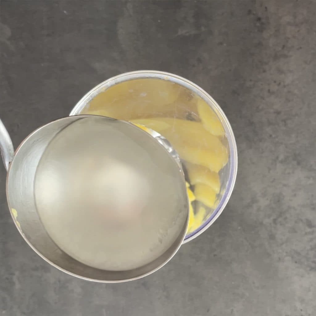 e adicione água aos poucos para tornar o molho de creme de batata cremoso.