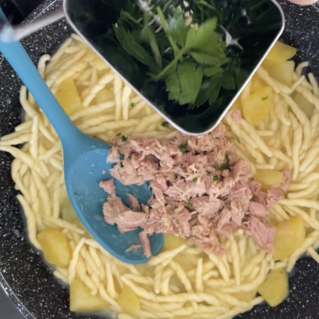 Macarrão com batata e atum é um prato principal cremoso e perfeito para qualquer ocasião. Eu cozinhei as batatas na frigideira para que ficassem ainda mais saborosas e perfumadas, mas se preferir, você pode fervê-las para obter um prato de sabor mais delicado e menos intenso. O macarrão com atum e batata é perfeito se por acaso sobraram algumas batatas do dia anterior, até mesmo batatas assadas estão ótimas, e para obter um macarrão cremoso é necessário que você triture algumas das batatas para obter um creme que depois será diluído com a água de cozimento do macarrão. Para fazer o macarrão com creme de batata e atum, eu usei trofie frescas, mas você pode usar espaguete ou até mesmo penne. Agora vamos ver como fazer o macarrão com batata e atum e se você experimentar, me diga. Barbara
