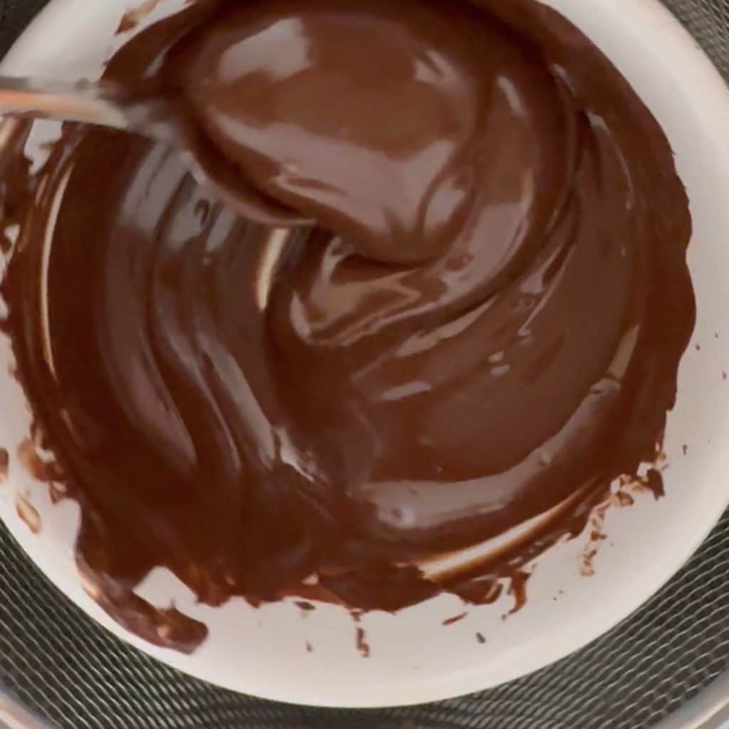 Passe as máscaras no chocolate e deixe escorrer o excesso de chocolate,