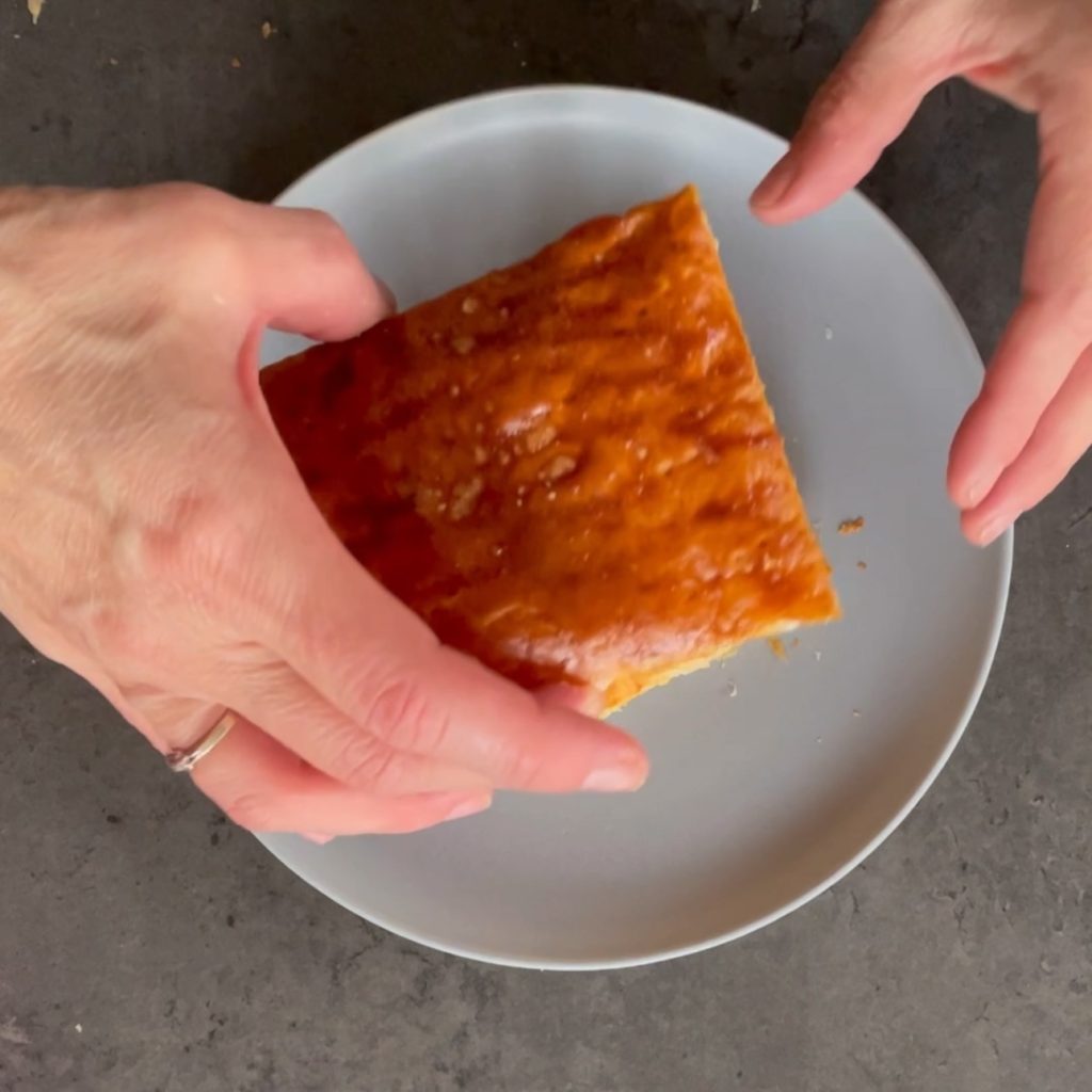 Quando a massa folhada estiver pronta, retire do forno e deixe esfriar, depois corte as bordas para torná-las mais rústicas.