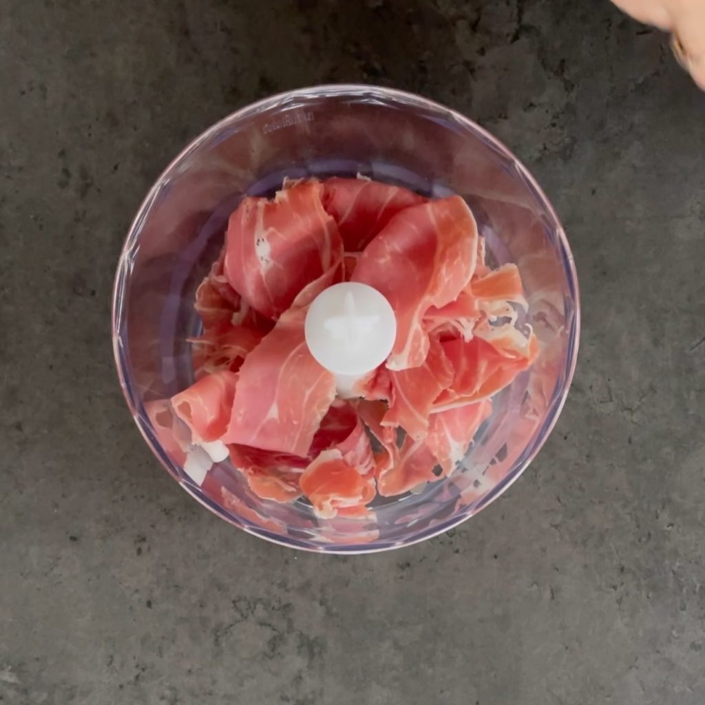 Despeje no copo do liquidificador o presunto cru