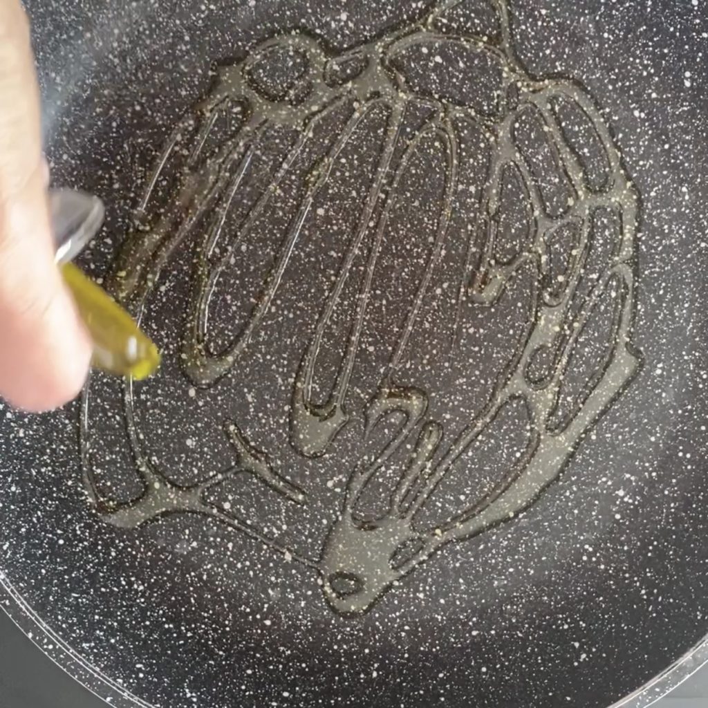 Coloque azeite de oliva extravirgem em uma frigideira,