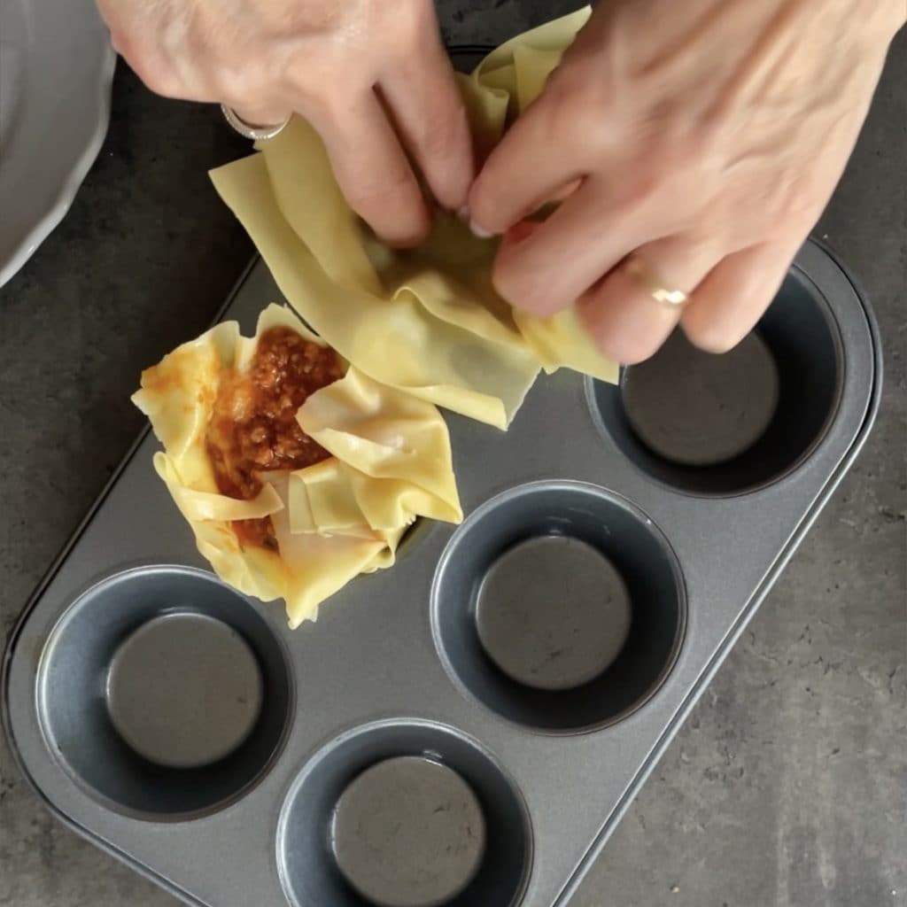 Pacotinhos de lasanha à bolonhesa são uma lasanha em porção única e são perfeitos também para servir em um almoço ou jantar em pé, por exemplo, se você organizar um aperitivo ou uma festa com buffet. Os pacotinhos de lasanha recheados são fáceis de fazer, basta usar a massa fresca que se encontra no supermercado e deixá-la de molho em água quente por alguns segundos para amolecer, esse passo evitará que a massa fresca se rompa quando você for colocá-la na forma de muffin para fazer os cestinhos de lasanha que depois você irá rechear. Os pacotinhos de massa fresca podem ser recheados de outras maneiras e não apenas com o ragù como eu fiz, assim você pode agradar o gosto de todos os seus convidados. Os cestinhos de lasanha ao forno podem ser preparados com antecedência, escolhendo se deseja cozinhá-los antes e aquecê-los na hora de servir, ou você pode prepará-los e conservá-los na geladeira e cozinhá-los pouco antes de servir. Se você gosta de lasanha à bolonhesa, experimente também as rolinhos de lasanha à bolonhesa saborosos e fáceis de fazer. Agora vamos ver como fazer os pacotinhos de lasanha à bolonhesa e se você experimentar, me avise. Barbara
