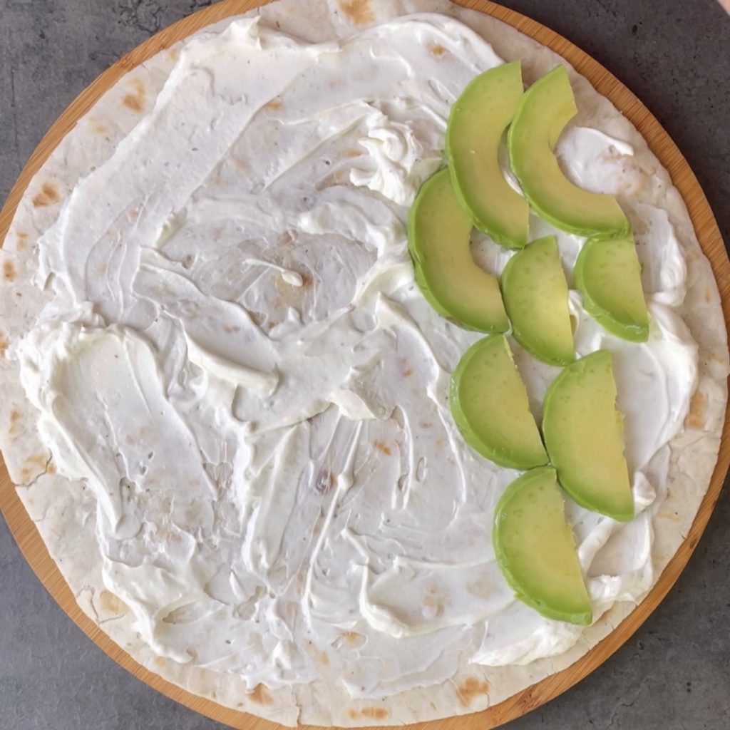• adicione as fatias de abacate em uma parte da piadina,