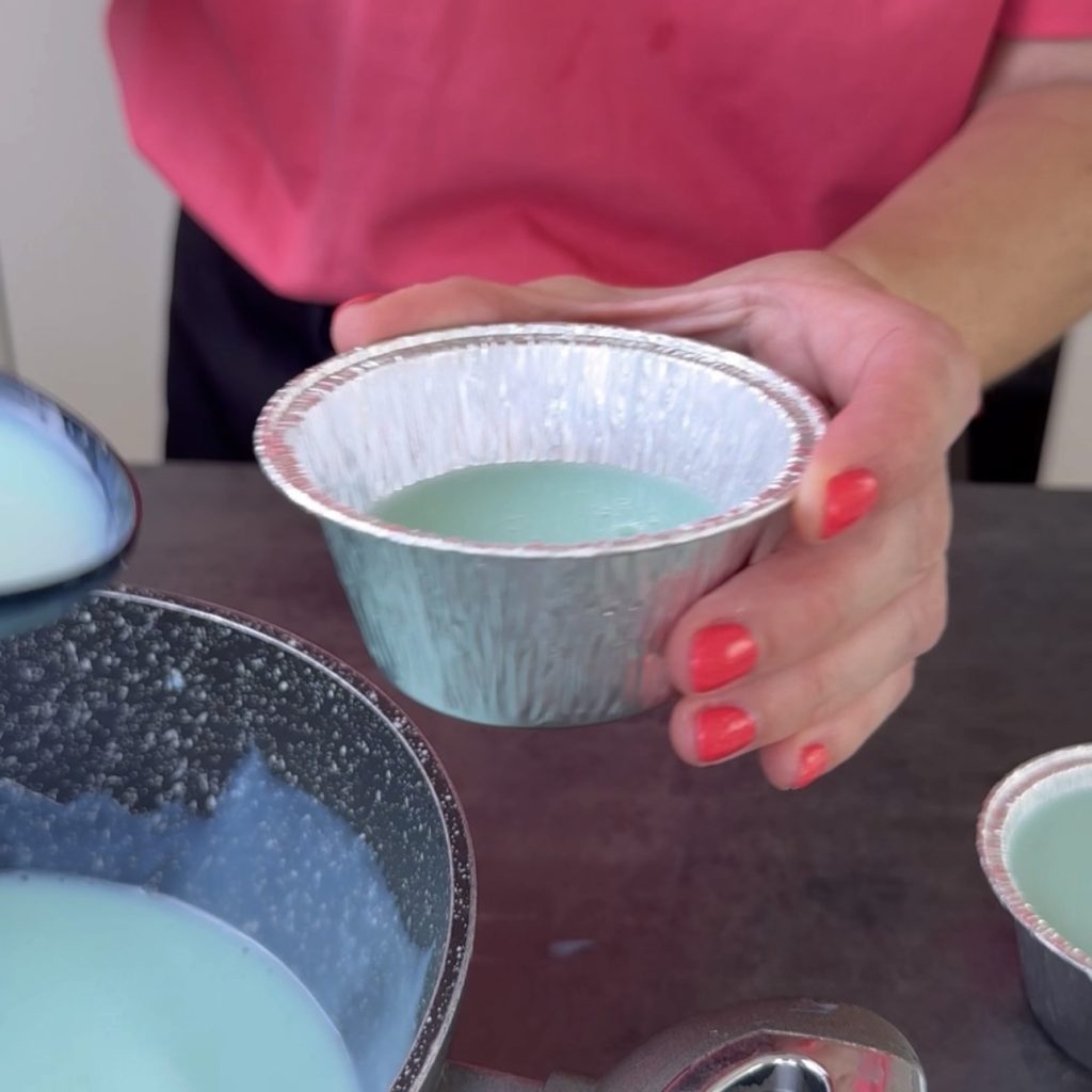 Transfira a mistura para os moldes e deixe esfriar, depois coloque na geladeira por 6/8 horas