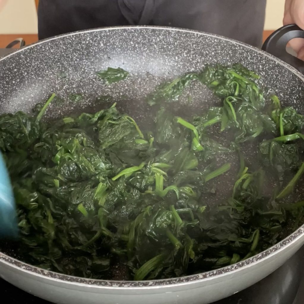 depois retire a tampa e continue cozinhando até que todo o líquido que se formou seja completamente absorvido. Quando os espinafres estiverem prontos, retire-os do fogo e deixe esfriar.