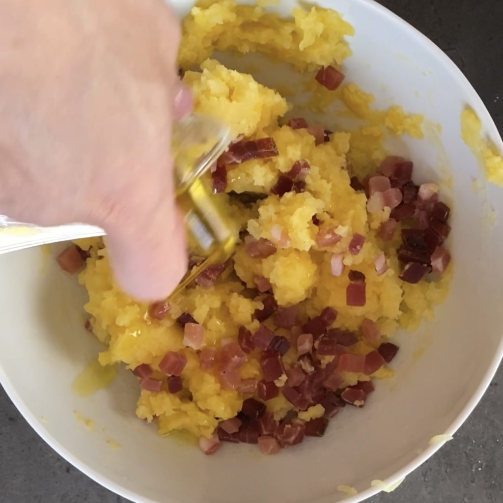 Adicione um ovo, o speck em cubos,