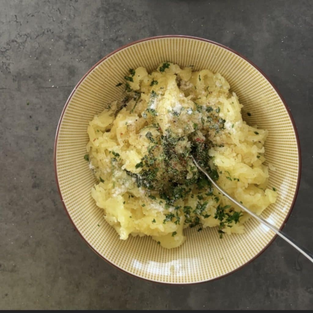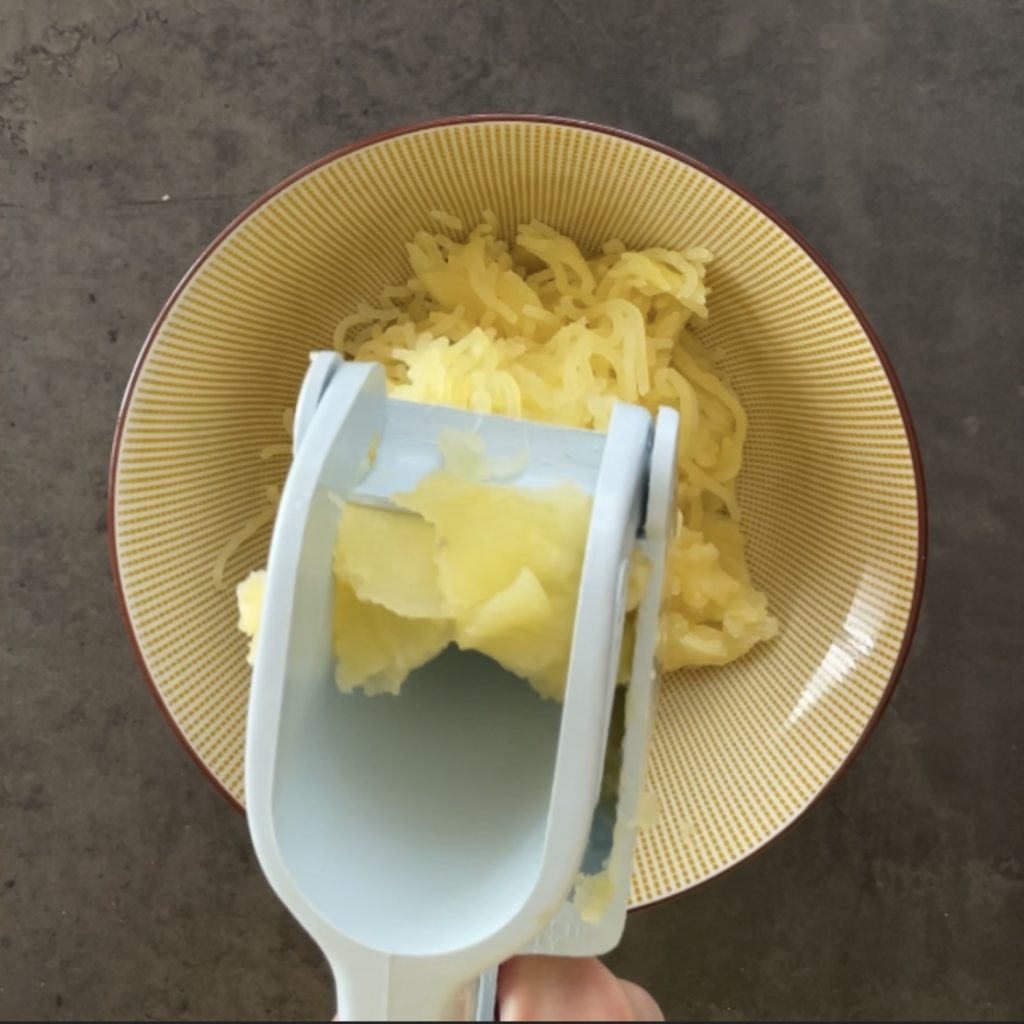 • Quando as batatas estiverem cozidas, amasse-as e coloque-as diretamente em uma tigela.